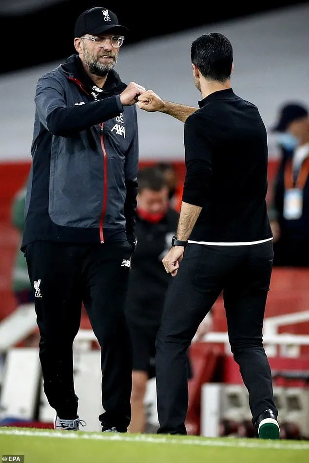 Klopp và Arteta đã có một cuộc đối đầu thú vị. ẢNH: EPA