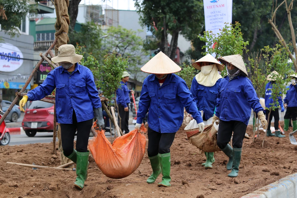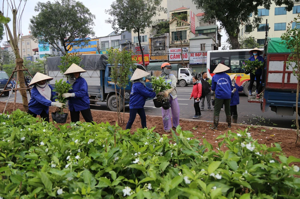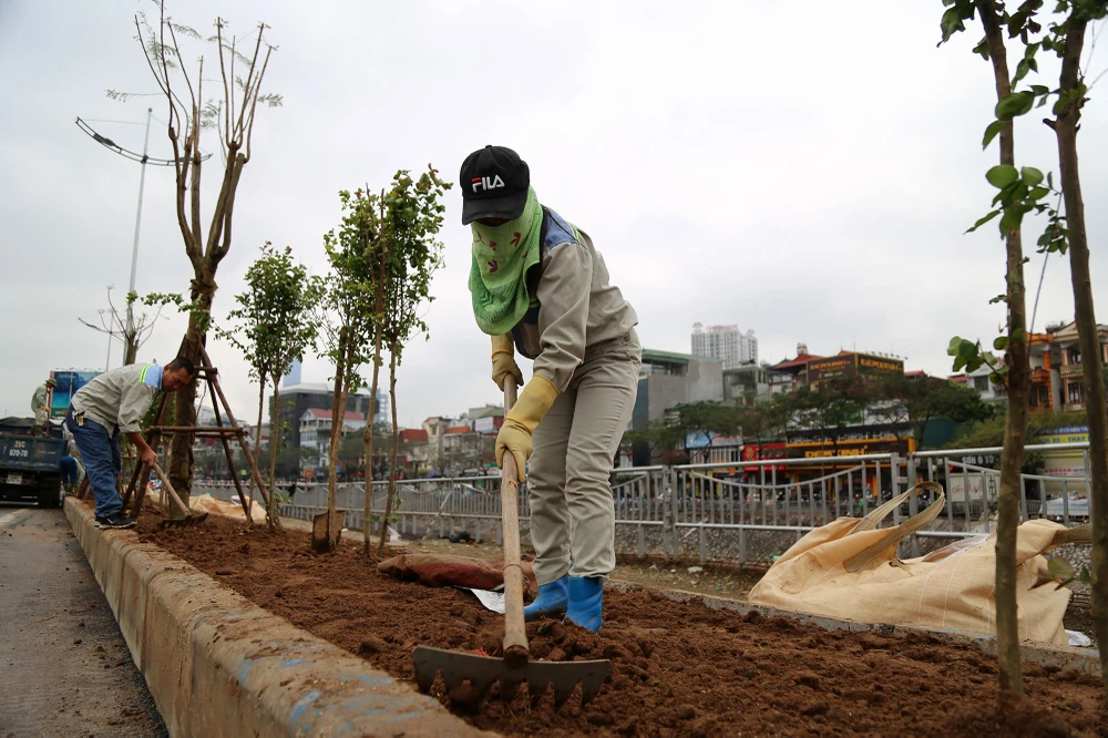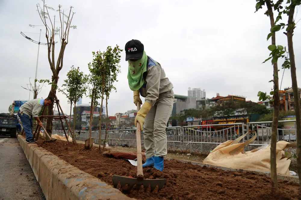 Tuyến đường được trồng cây mới, thi công mới vỉa hè và lan can dọc sông Tô Lịch.