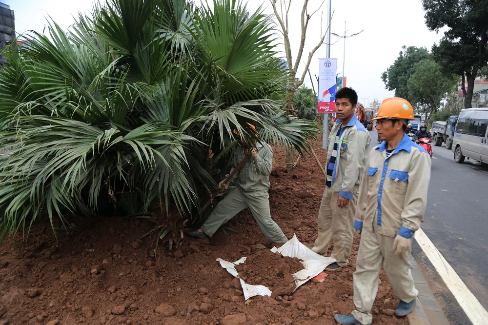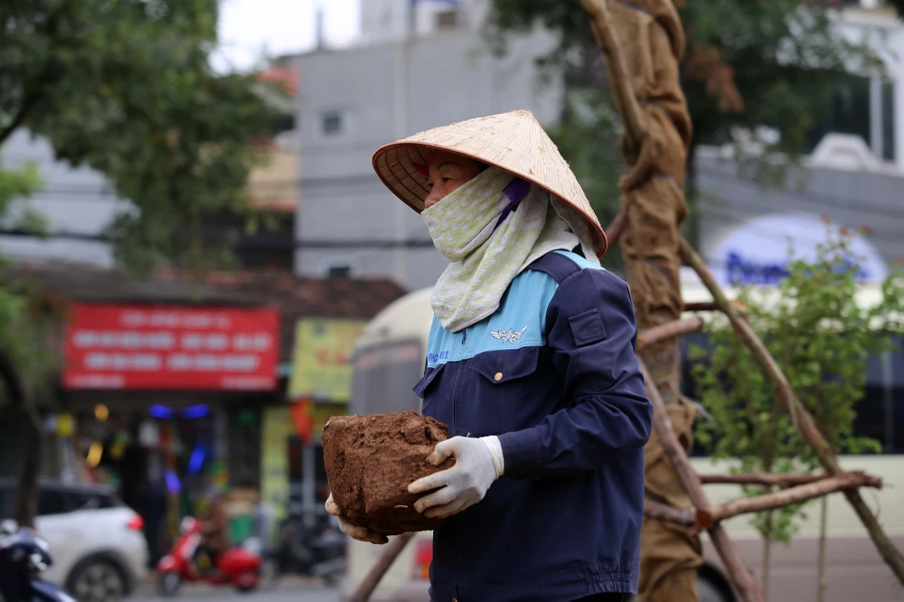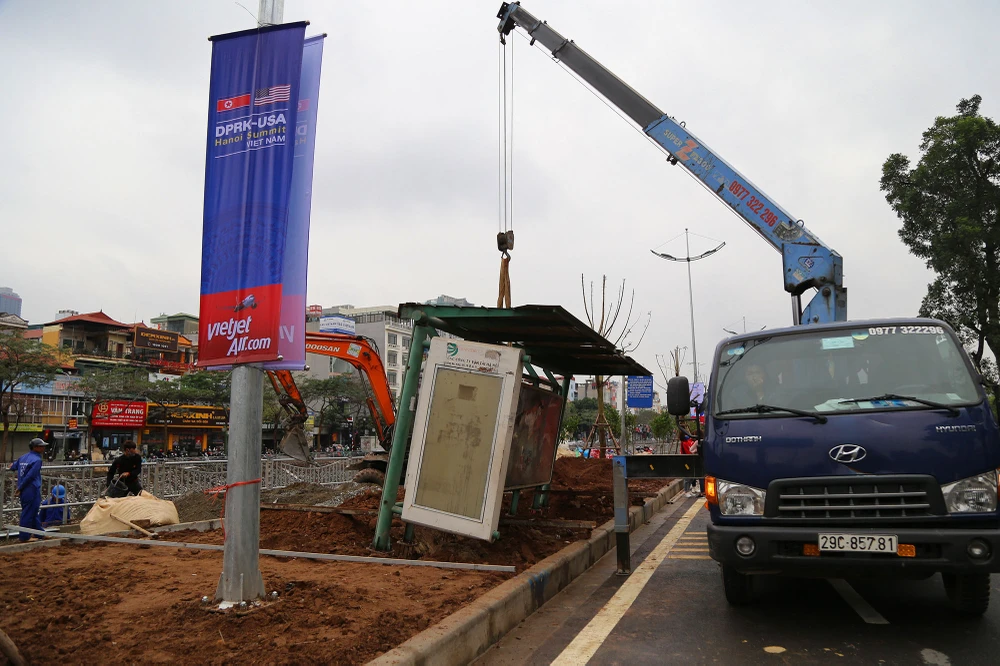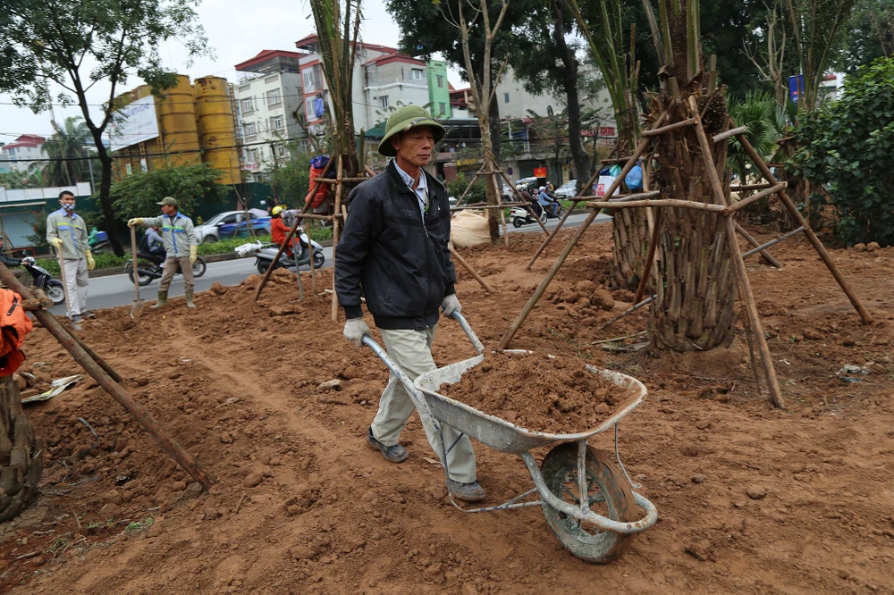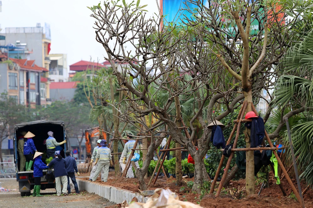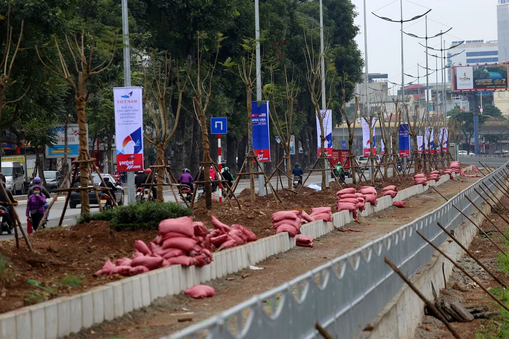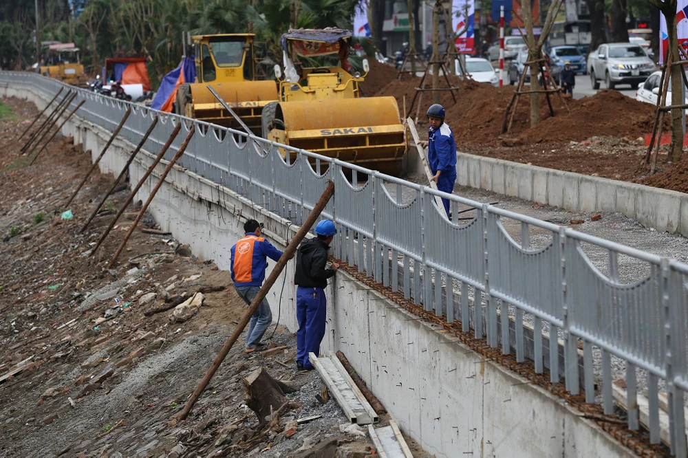 "Việc lắp đặt mới rào chắn và thi công mới vỉa hè đã được thực hiện từ trước Tết, và cũng phải hoàn thành trước ngày 27-2" - một công nhân cho biết.