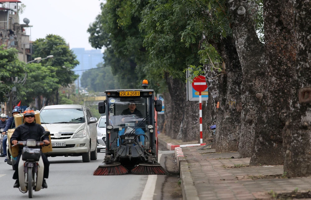 Công nhân vệ sinh tuyến đường Kim Mã trước thềm hội nghị Mỹ - Triều.