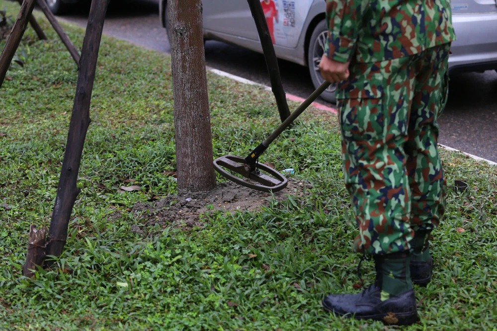 Lực lượng công binh ra soát kỹ từng gốc cây.