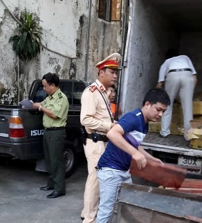 Tại đây, lái xe được xác định là Vũ Hoàng Hà (SN 1988), trú Tân Kỳ (Nghệ An); người đi cùng là Lê Văn Phúc (SN 1988), trú Hoa Lư (Ninh Bình). Hà cho biết mình chỉ là người đi chở thuê từ ga Giáp Bát về kho của một công ty có địa chỉ tại phường Mỗ Lao, quận Hà Đông (Hà Nội). Cả hai đều không biết số gỗ trên là gỗ gì.