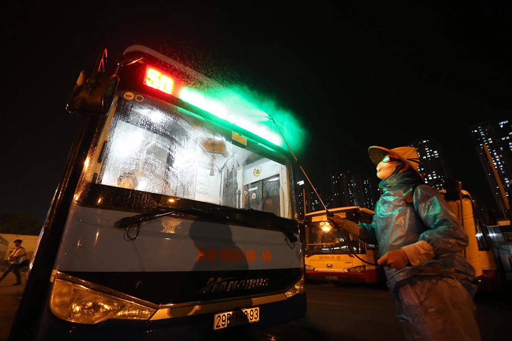 Xe bus 10-10 phải thực hiện phun khử khuẩn vào tối ngày 5-8.