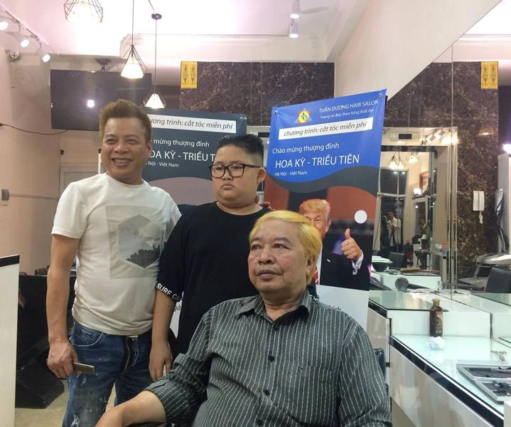 Theo anh Lê Tuấn Dương, chủ salon tóc Tuấn Dương trên đường Đê La Thành, Hà Nội, chính cuộc gặp gỡ tới đây giữa Tổng thống Mỹ Donal Trump và nhà lãnh đạo Triều Tiên Kim Jong Un đã khiến anh nảy ra ý tưởng cắt miễn phí cho những ai muốn có kiểu tóc như hai người này.