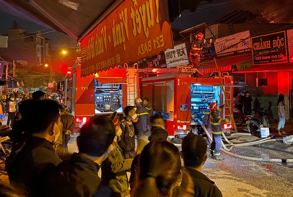 Cảnh sát phòng cháy chữa cháy Hà Nội đã điều 10 lượt xe cứu hỏa, tổ chức lực lượng ngăn chặn cháy lan trong lúc tiểu thương ở khu vực gần đám cháy sơ tán tài sản.