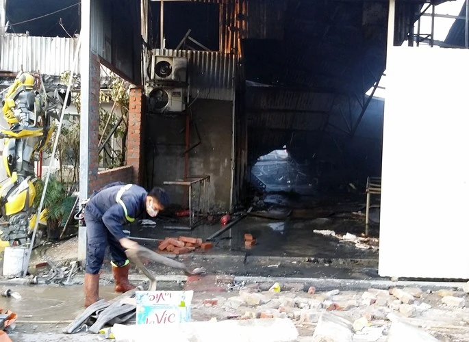Hiện trường khu nhà kho bị hỏa hoạn sau đám cháy chỉ còn tro tàn và đổ nát
