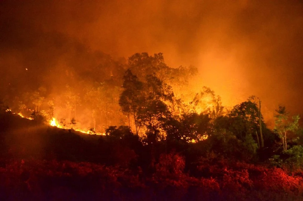 Vụ cháy lớn nhất lịch sử tại rừng Sóc Sơn. Ảnh: CTV