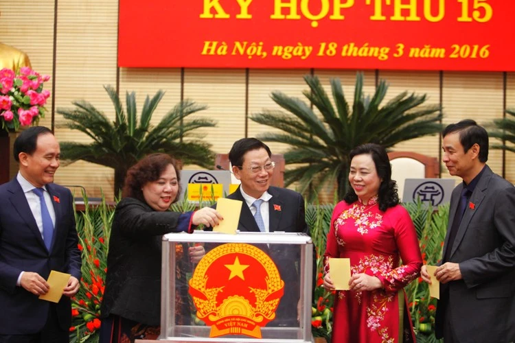 Các ĐB HĐND TP Hà Nội bỏ phiếu kín bầu các chức danh của HĐND và UBND.
