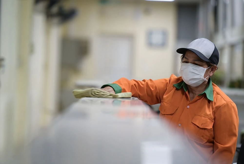 Tại bến xe Nước Ngầm, công tác dọn dẹp, chuẩn bị cho việc mở cửa hoạt động trở lại.