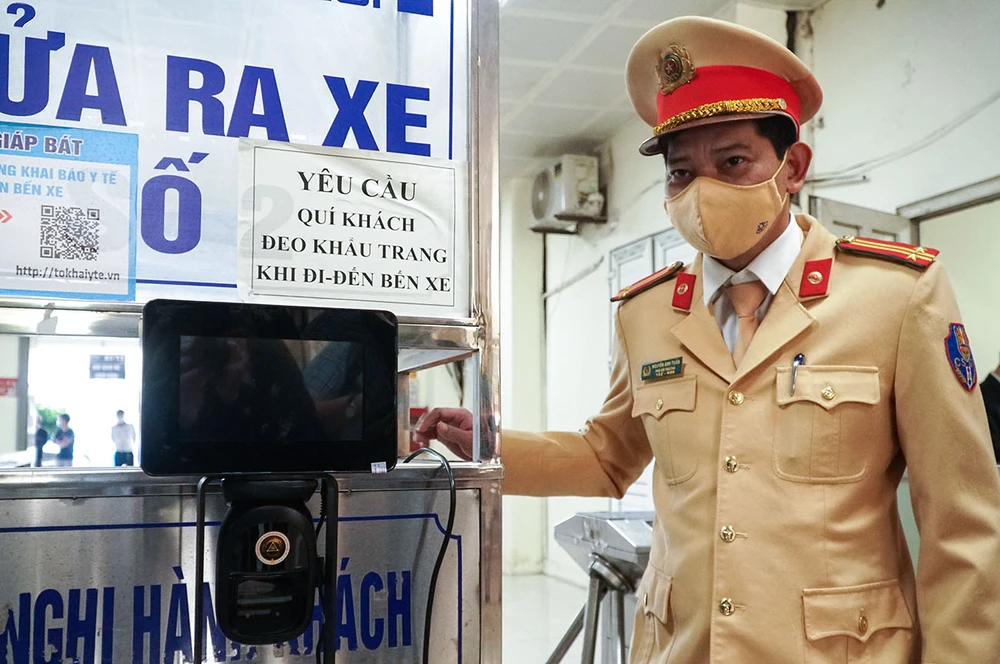 Trung tá Nguyễn Anh Tuấn - Đội phó Đội CSGT số 14 (Phòng CSGT Hà Nội) thông tin, sau khi khảo sát, Bến xe Giáp Bát có lượng người và phương tiện đi, đến rất lớn, do đó, đơn vị đã phối hợp với Cục C06 và bến xe, lắp đặt máy quét mã QR Code tại cửa ra vào và hướng dẫn cho người dân thực hiện.