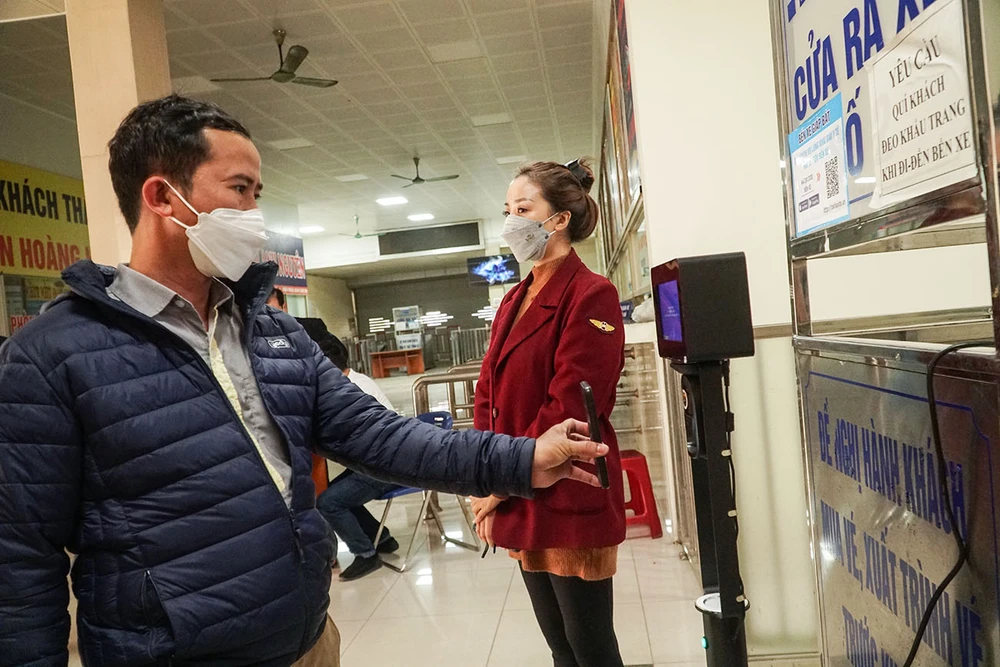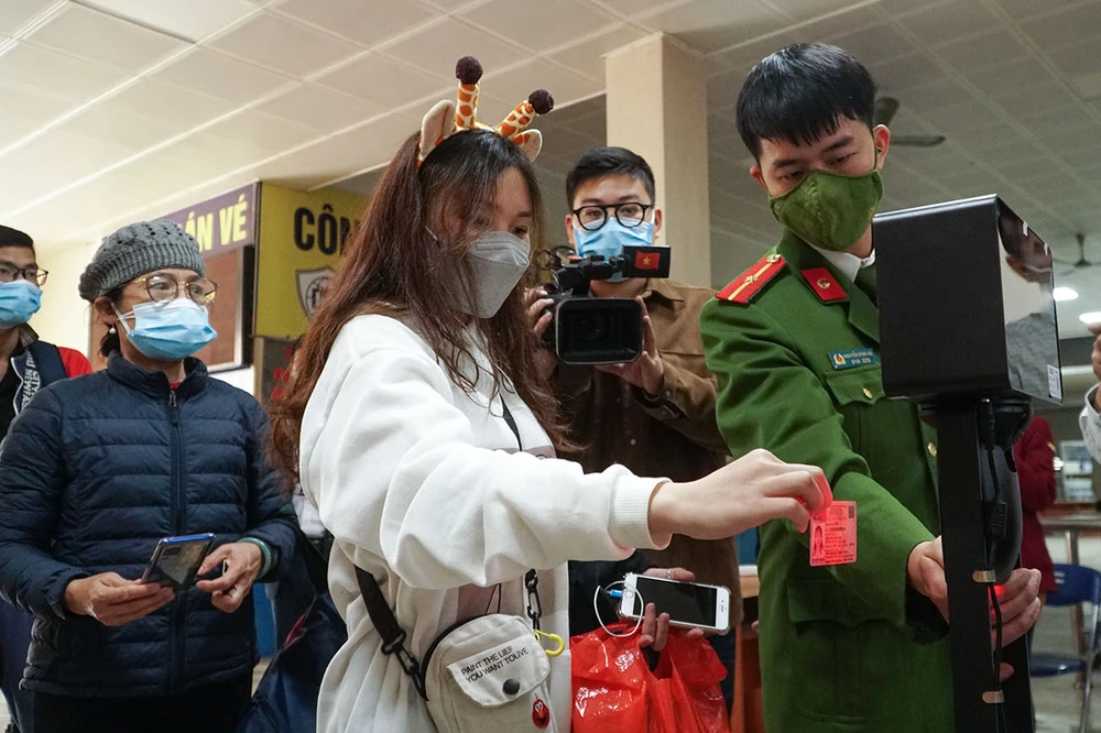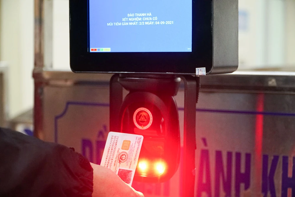 Thay vì phải kê khai thủ công bằng giấy hoặc quét mã qua tờ giấy dán trên tương ở các lối ra vào tại bến xe, hành khách chỉ cần sử dụng thẻ CCCD gắn chíp hoặc điện thoại thông minh có cài App PC- COVID hoặc VNEID của Bộ Công an quét qua camera là khai báo y tế nhanh chóng, thuận tiện.