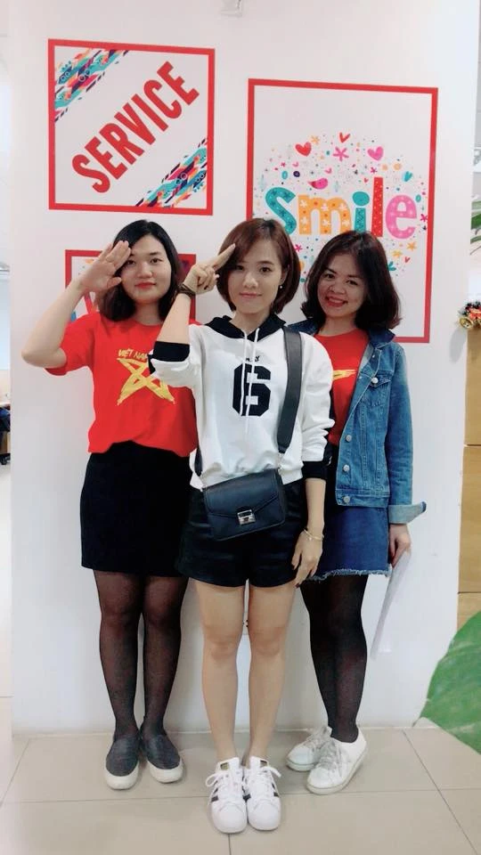 Các nhân viên của công ty Cổ phần Tasco với trang phục cờ đỏ sao vàng. Dạo quanh nhiều công sở của Hà Nội, màu áo cờ đỏ sao vàng luôn xuất hiện dày đặc