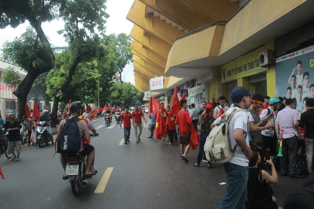 Ngay từ rất sớm, hàng trăm cổ động viên đã có mặt tại sân vận động Hàng Đẫy.