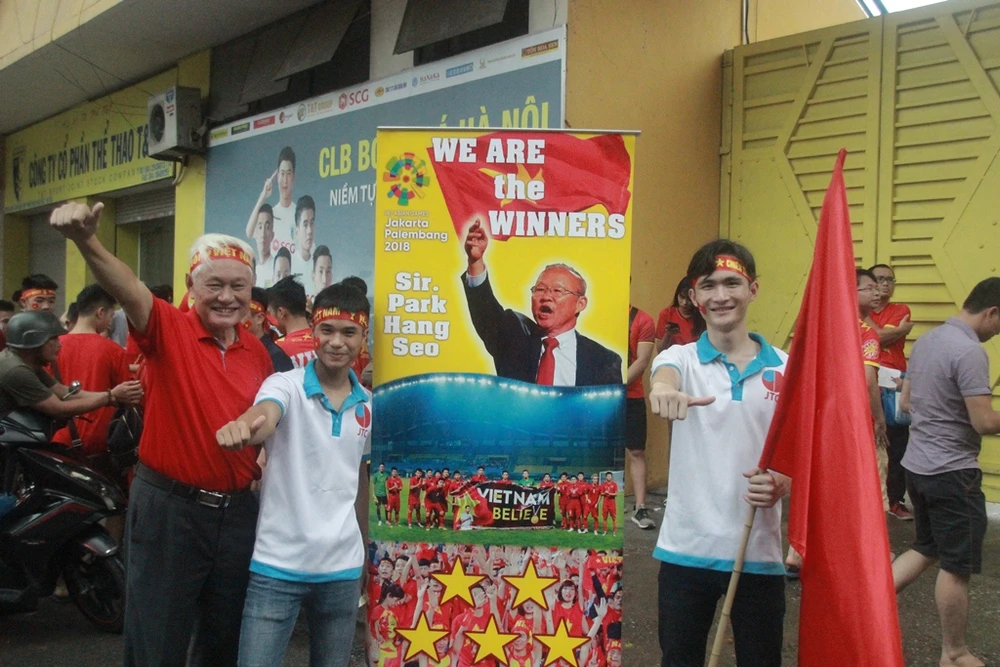 Cổ động viên mang hình HLV Park Hang-seo vào sân cổ vũ.