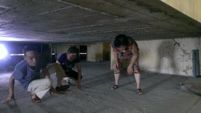 Ghi nhận thực tế, quả thực việc đi lại của các hộ dân tại đây chẳng giống với bất cứ nơi đâu. Do hai đơn nguyên không thông với nhau, để được đi thang máy, các hộ dân của đơn nguyên I phải chui phía dưới các hộp kỹ thuật, khoảng cách từ mặt đất đến trần chỉ khoảng 1m nên người dân phải cúi gập người rồi… trườn dần sang phía đơn nguyên II.