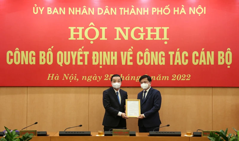 Chủ tịch UBND TP Hà Nội Chu Ngọc Anh trao quyết định bổ nhiệm làm Chánh văn phòng UBND TP Hà Nội cho ông Trương Việt Dũng.