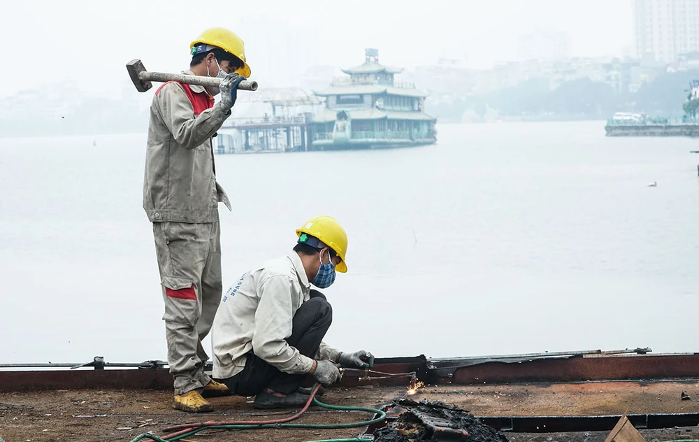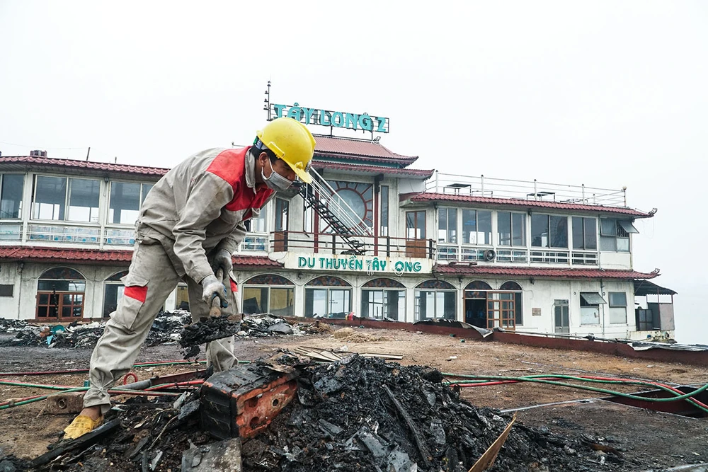 Một công nhân cho biết việc tháo dỡ các tàu thuyền cuối cùng còn sót lại trên mặt Hồ Tây sẽ hoàn thành trong khoảng một tuần nữa.