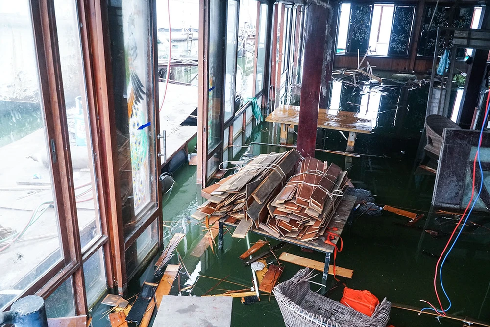 Sau 5 năm dừng hoạt động, bỏ hoang, một số du thuyền đã bị phá nước, bên trong đồ cũ, rác thải nổi lềnh bềnh
