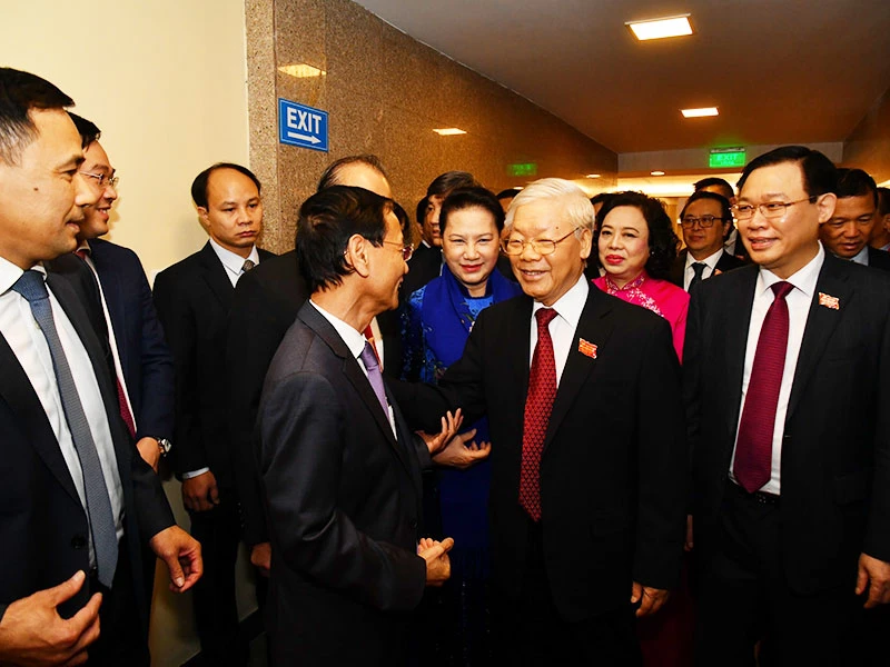 Tổng bí thư, Chủ tịch nước Nguyễn Phú Trọng đến dự và chỉ đạo Đại hội Đảng bộ TP Hà Nội vào sáng 12-10. Ảnh: TP