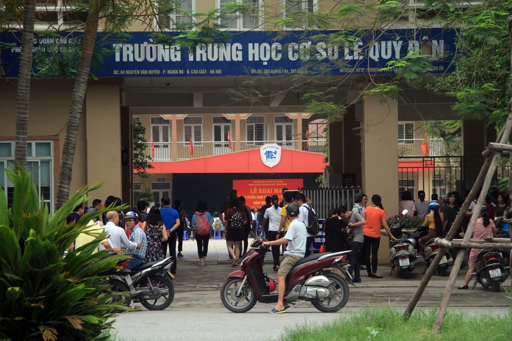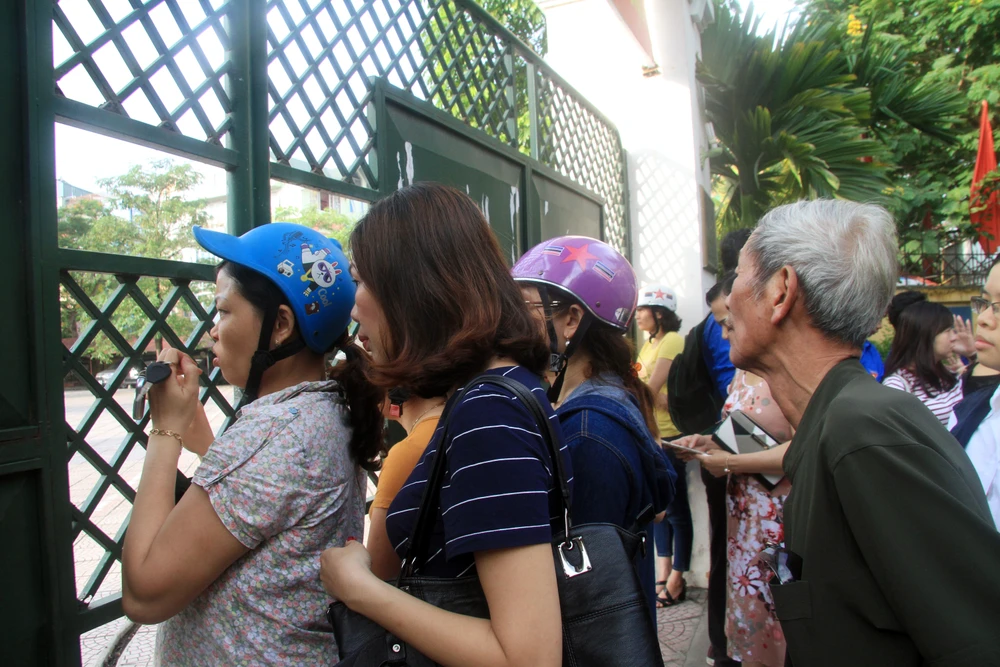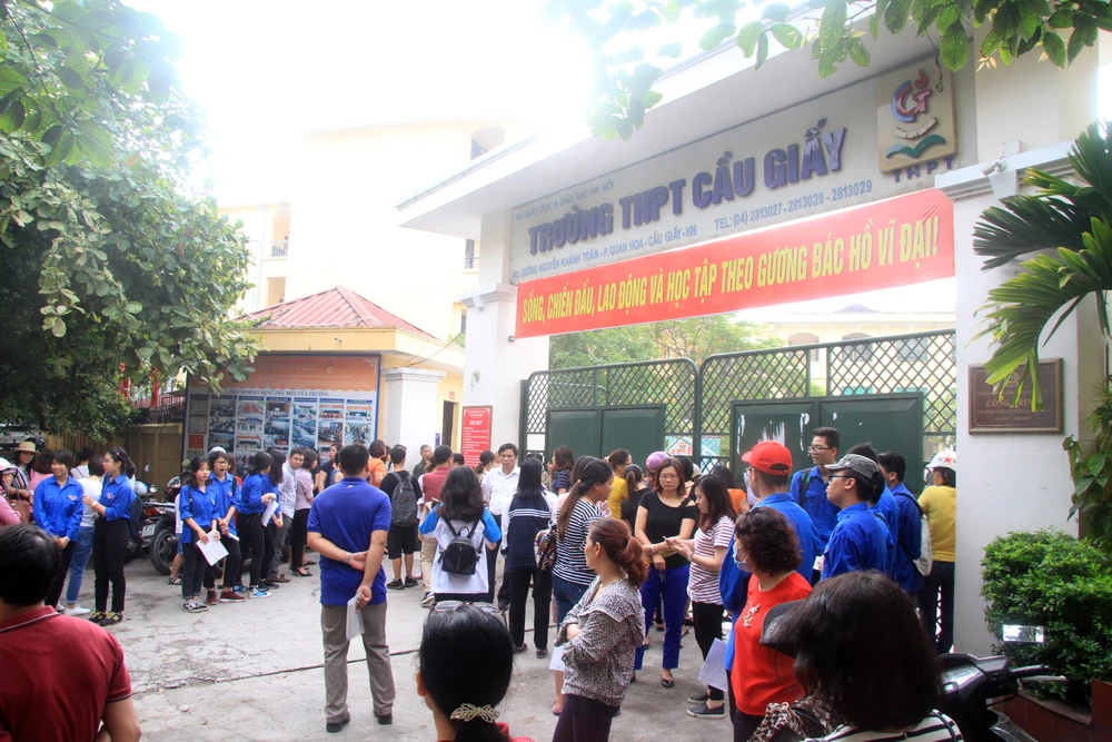 Phụ huynh vây kín cổng trường tại điểm thi Trường THPT Cầu Giấy. Năm học 2016-2017 sẽ có gần 83.000 học sinh tốt nghiệp THCS. Tuy nhiên, chỉ khoảng 70% có cơ hội học tại trường cấp ba công lập thủ đô. Khoảng 30% (tương ứng 26.000 học sinh) sẽ học tại các trường tư thục, trung tâm giáo dục thường xuyên và trường nghề.
