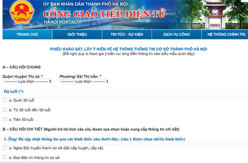 Mục lấy ý kiến người dân về loa phường trên Cổng thông tin điện tử Hà Nội đã hoạt động trở lại