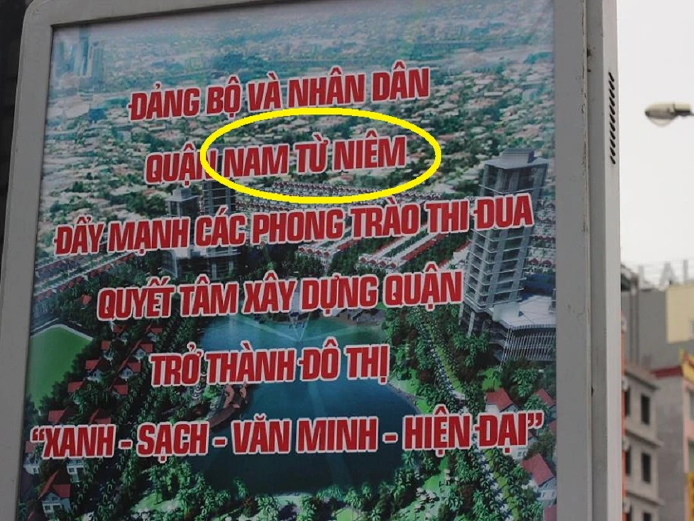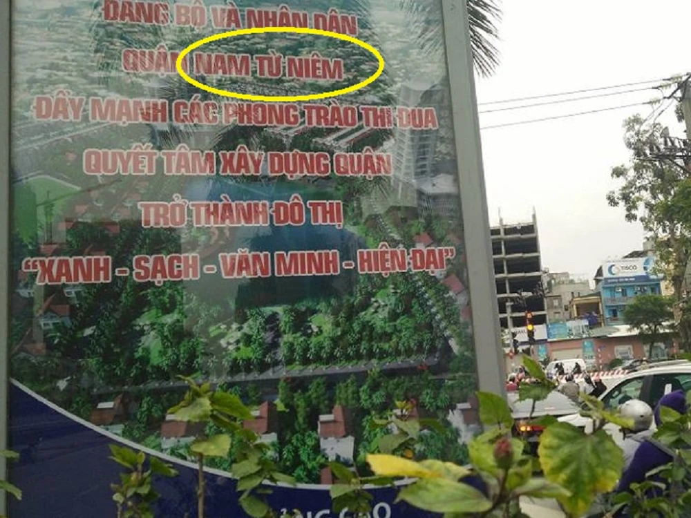 Tuy nhiên, một lỗi sai chính tả đã xuất hiện tại các khẩu hiệu này. Theo đó, ngay đến tên hành chính của quận cũng bị viết sai, thay vì “Nam Từ Liêm” thì lại viết thành “Nam Từ Niêm”.