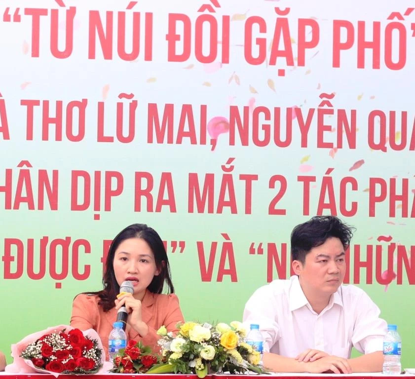 Nhà văn Lữ Mai và nhà báo Quang Hưng tại buổi tọa đàm.