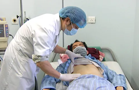 Một bệnh nhân nghi viêm não mô cầu đang được bác sĩ thăm khám tại BV Bệnh nhiệt đới Trung ương. Ảnh: Đ.MINH