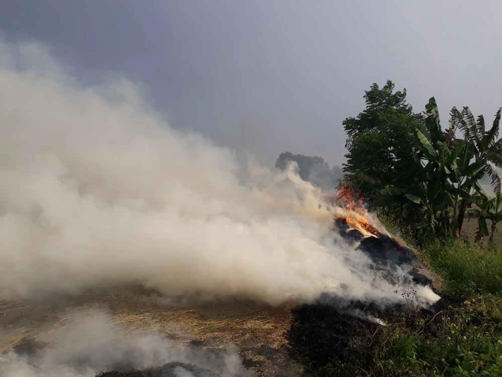 Thay vì phơi khô rồi mang về nấu hoặc cho gia súc ăn như truyền thống, hầu hết rơm, rạ đều được đốt ngay sau khi thu hoạch lúa. Tro sẽ được rải trực tiếp xuống ruộng giúp đất màu mỡ hơn.
