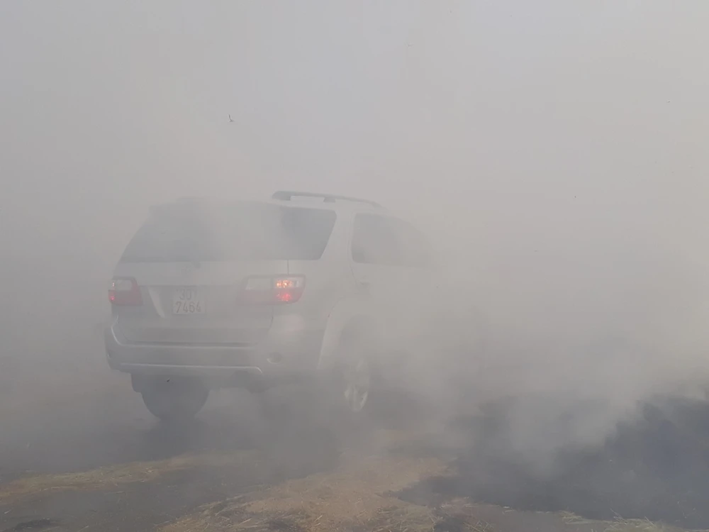 Thậm chí, tại nhiều tuyến đường, do khói và lửa từ việc đốt rơm bùng lên quá lớn, các phương tiện phải đứng chờ, đến khi hết khói mới có thể tiếp tục di chuyển.