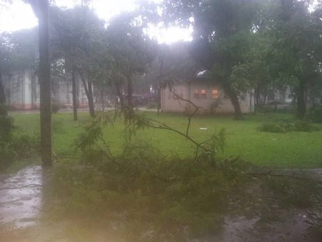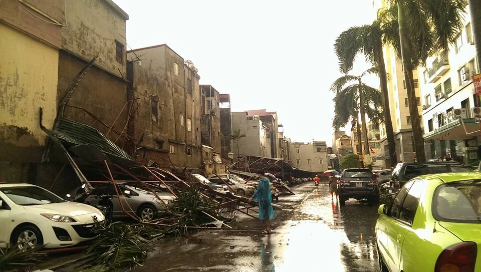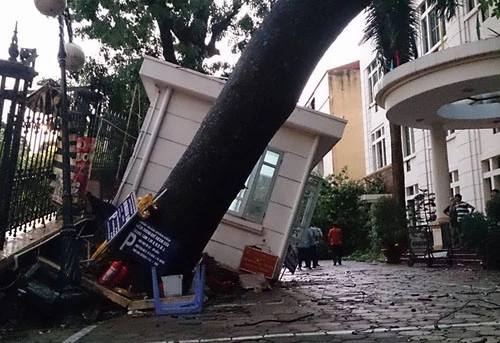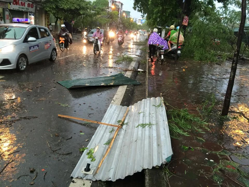 Khoảng 5 giờ chiều ngày 13-6, một cơn giông bất ngờ ập vào nội thành Hà Nội với gió mạnh cấp 7-8, kèm theo mưa lớn làm đổ nhiều cây cối, nhiều nhà tốc mái, nhiều tuyến phố bị ngập, một số nơi mất điện cục bộ.
