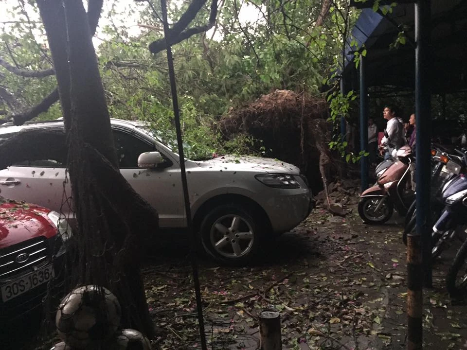 Thống kê sơ bộ, Hà Nội sau cơn mưa giông có 98 cây xanh bị đổ, 15 ô tô bị cây đè, 3 người bị thương, 1 người chết.