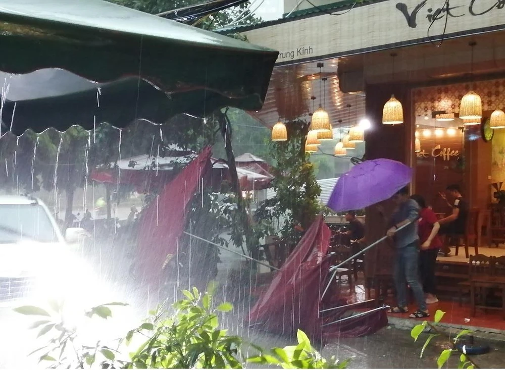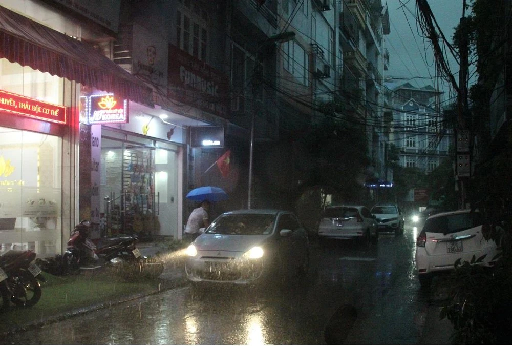 Dù mới 14 giờ chiều, bầu trời Hà Nội xám xịt, 14 giờ 30, mưa lớn bắt đầu trút xuống. Người lưu thông trên đường đều phải bật đèn pha, các cửa hàng, văn phòng cũng đua nhau sáng điện.