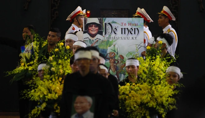 Đông đảo văn nghệ sĩ, người thân, bạn bè và nhiều độc giả nhỏ tuổi đã có mặt tại Nhà tang lễ Bộ Quốc Phòng (số 5 Trần Thánh Tông) sáng 17-7 để thắp hương tiễn biệt con người mà họ vẫn gọi một cách mến yêu “cụ Dế Mèn”.