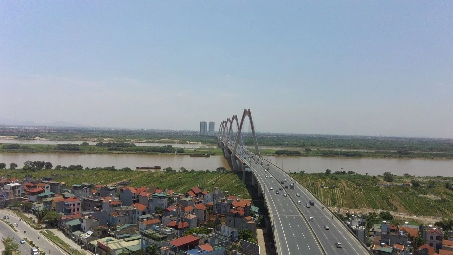 Cầu Nhật tân nối huyện Đông Anh vào nội thành Hà Nội. Ảnh: PH