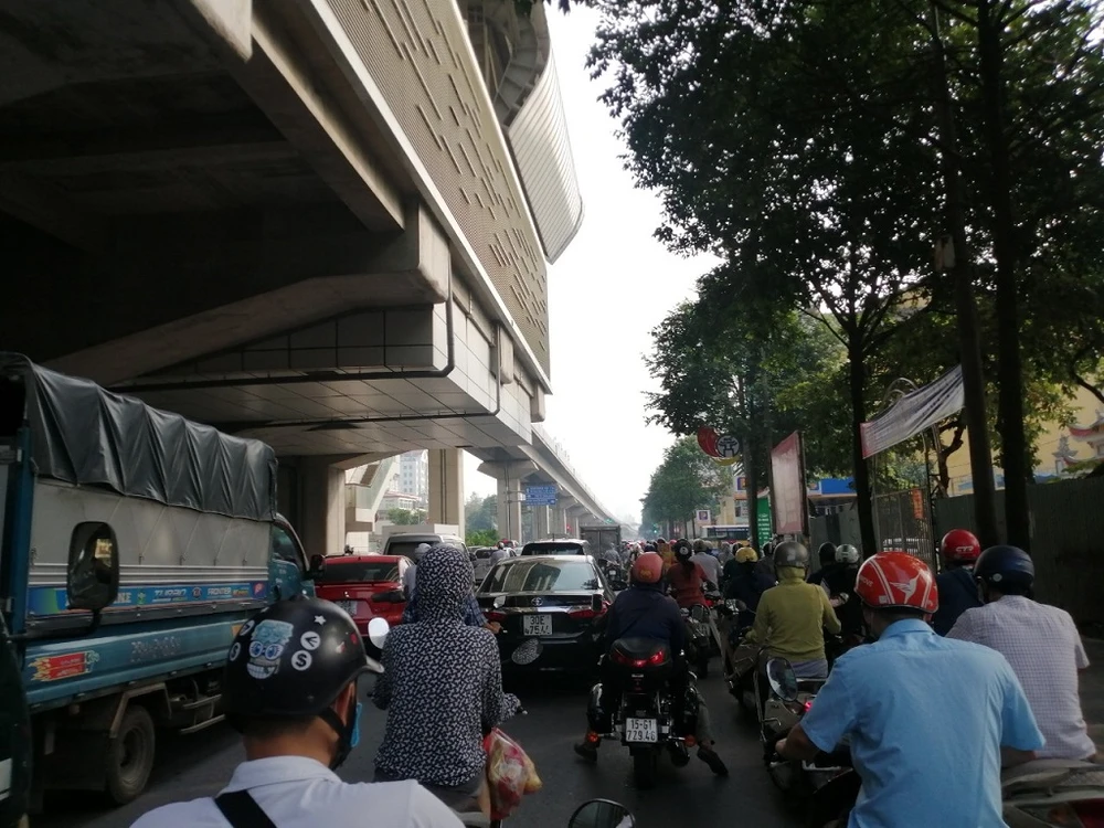 Đường Trường Chinh đông nghịt xe cộ trong ngày đầu Hà Nội bỏ giấy đi đường