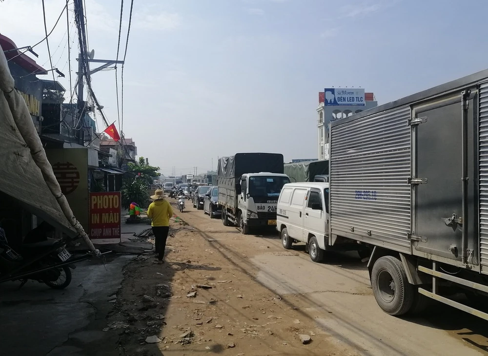 Hàng dài phương tiện di chuyển chậm trên tuyến quốc lộ 1A cũ, đoạn qua địa bàn huyện Thường Tín
