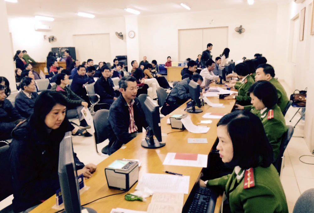 Trong đó ngoài địa điểm cấp tại Phòng Cảnh sát quản lý hành chính và trật tự xã hội (PC64, Công an TP Hà Nội) tại 44 Phạm Ngọc Thạch, 30 địa điểm khác tại trụ sở tiếp dân của công an các quận, huyện, thị xã cũng tiến hành làm thẻ căn cước cho người dân.