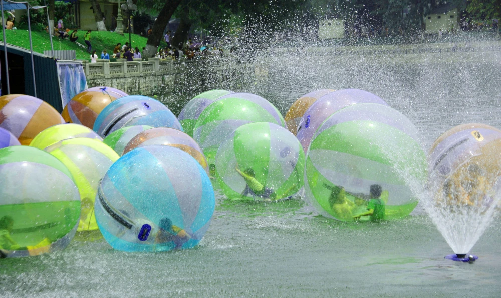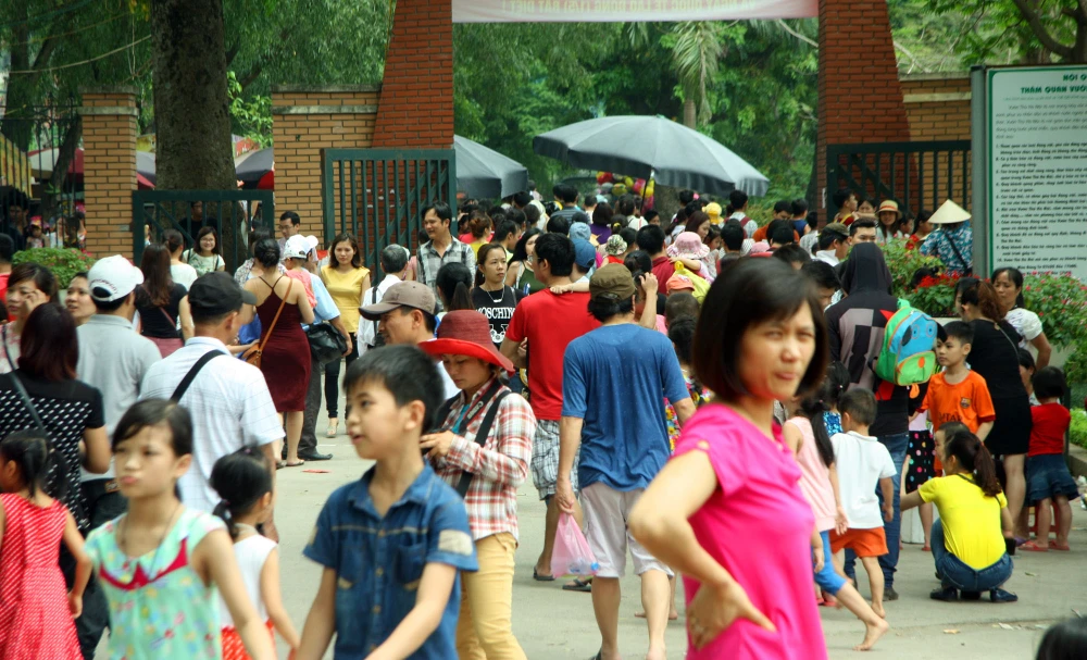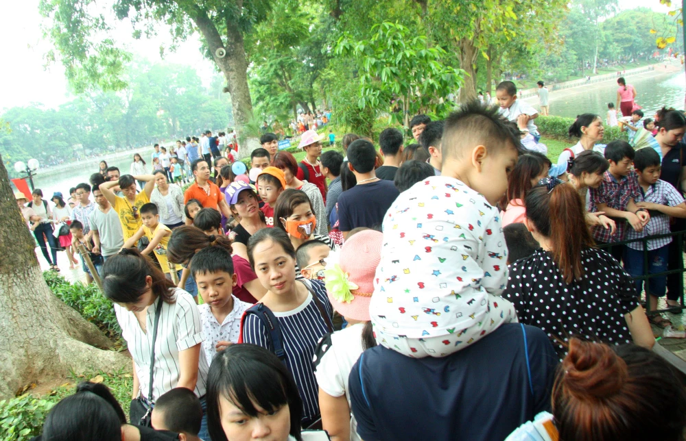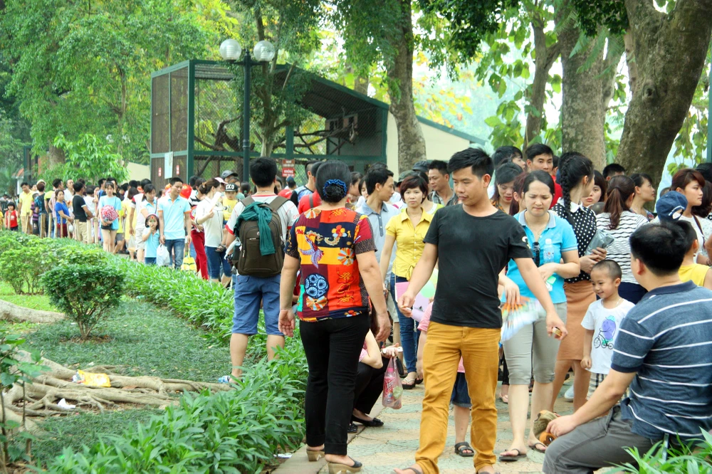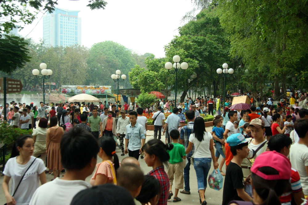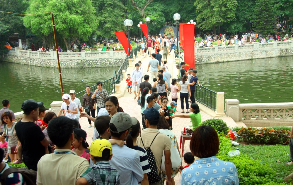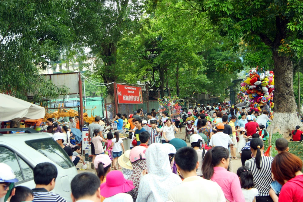 Tại Công viên Thủ Lệ trong buổi sáng và buổi trưa 1-5, người dân tới đây rất đông đúc.