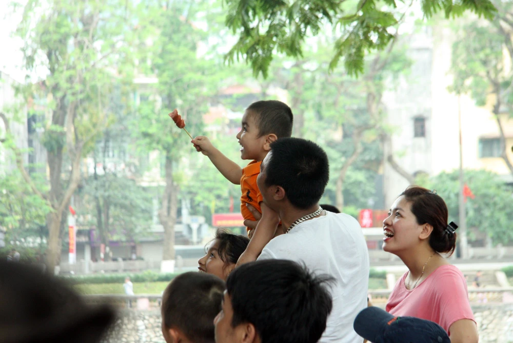 Dịp nghỉ lễ, nhiều gia đình ở Hà Nội có dịp đưa con cái đi chơi, mua sắm.