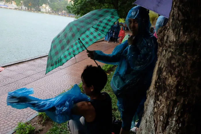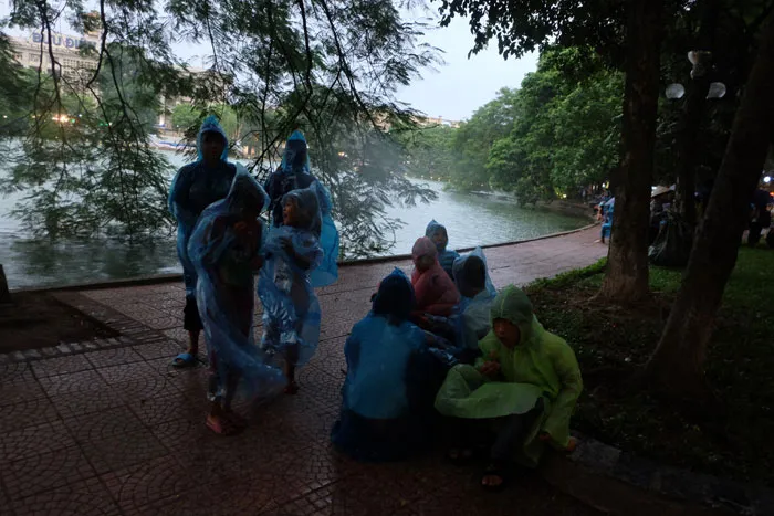 Theo dự kiến, 21 giờ ngày 2-9 tại Hà Nội sẽ có 5 điểm bắn pháo hoa nhân kỷ niệm ngày quốc khánh 2-9. Nhiều người dân Hà Nội háo hức đội mưa để chờ đến giờ pháo hoa. Tại điểm bắn pháo hóa của khu vực Hồ Gươm, từ chiều tối, mặc dù trời mưa lớn, nhưng người dân vẫn khoác áo mưa ra đường tới điểm bắn bất kể trời mưa.
