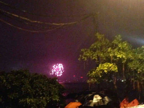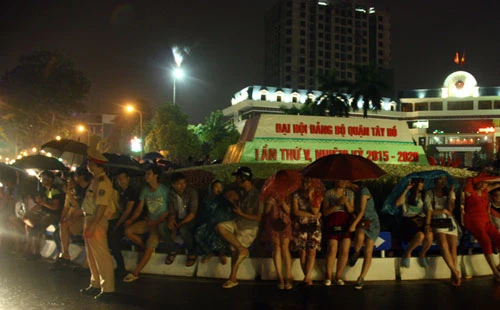 Ghi nhận của Pháp Luật TP.HCM tại điểm bắn pháo hoa ở cạnh Hồ Tây lức 19 giờ 30 phút cùng ngày, dù trời mưa nặng hạt, tuy nhiên lượng người đổ về khu vực vườn hoa Lạc Long Quân vẫn rất đông, lực lượng chức năng đã phải lập rào chắn ngăn không cho ô tô qua lại tránh ùn tắc giao thông, đảm bảo an ninh trật tự.
