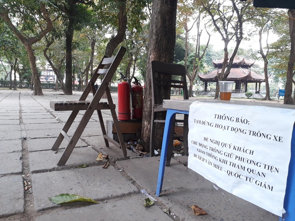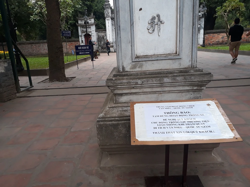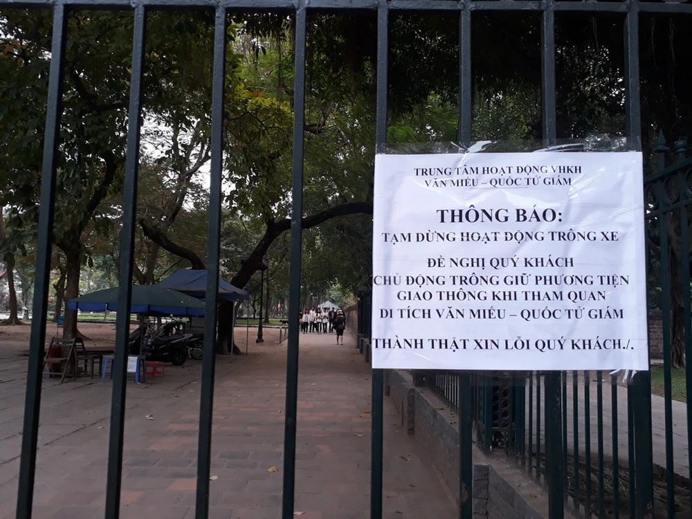 Cách đây hai ngày, Trung tâm Hoạt động văn hóa khoa học Văn Miếu - Quốc Tử Giám (Hà Nội) đột ngột ra thông báo tạm dừng mọi hoạt động trông giữ xe cho khách tham quan tại vườn Giám. Việc này khiến cho nhiều du khách rất vất vả để tìm được chỗ gửi xe.