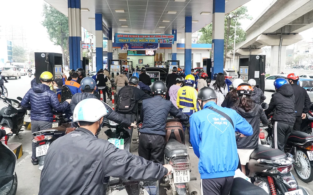 Ghi nhận từ đầu giờ chiều ngày 10-3 tại nhiều cửa hàng xăng dầu tại Hà Nội, nhiều người dân đã ùn ùn kéo tới để đổ xăng trước thông tin có thể tăng giá xăng dầu.