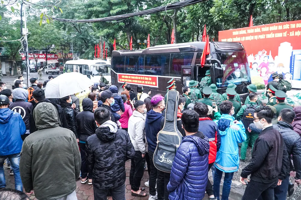 Sau buổi lễ, các tân binh nhanh chóng di chuyển ra ô tô để lên đường thực hiện nghĩa vụ.