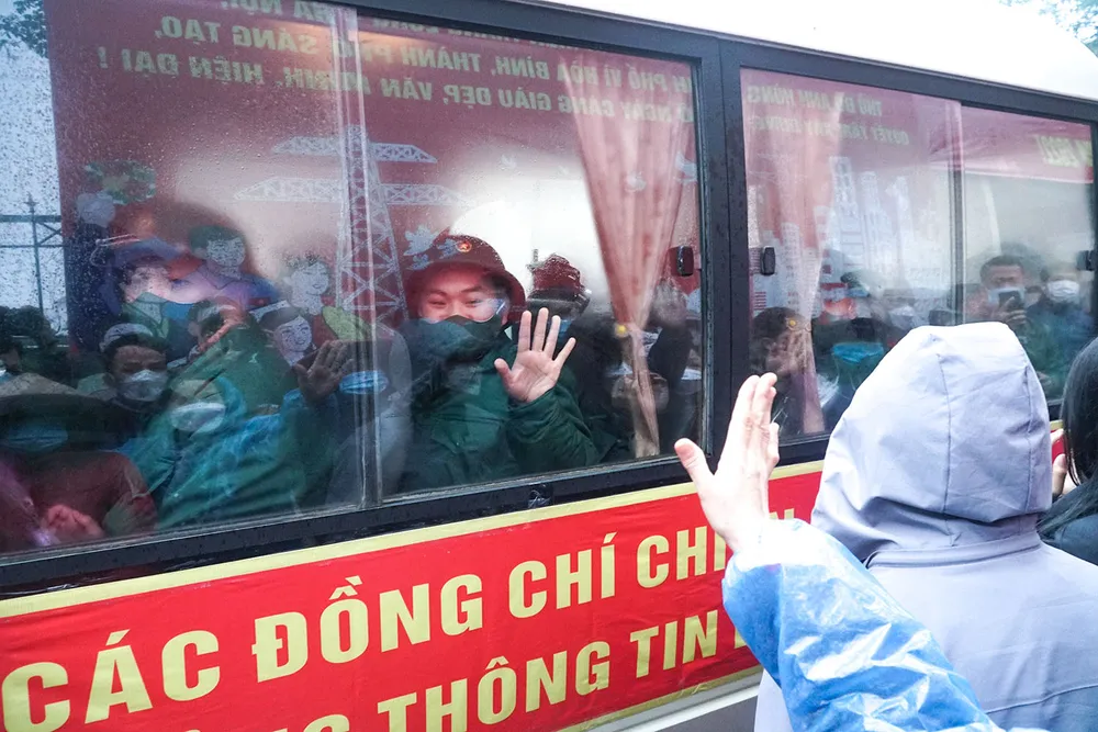 Nhiều người thân đứng giờ tay vẫy chào các tân binh, cảm xúc bịn rịn lưu luyến.