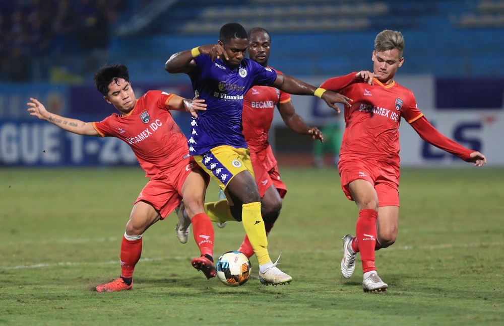 Rất may cho chủ sân Hàng Đẫy trong hoàn cảnh ngặt nghèo thì phẩm chất ngôi sao cá nhân đã lên tiếng. Đầu tiên là pha bay người đánh đầu của tiền đạo Rimario từ đường chuyền như đặt của hậu vệ phải Văn Kiên làm tung lưới B. Bình Dương. Tiếp đến ở phút cuối cùng, Quang Hải chớp thời cơ tung cú sút cháy lưới Đức Cường giúp cho Hà Nội bỏ túi 3 điểm ngon lành.