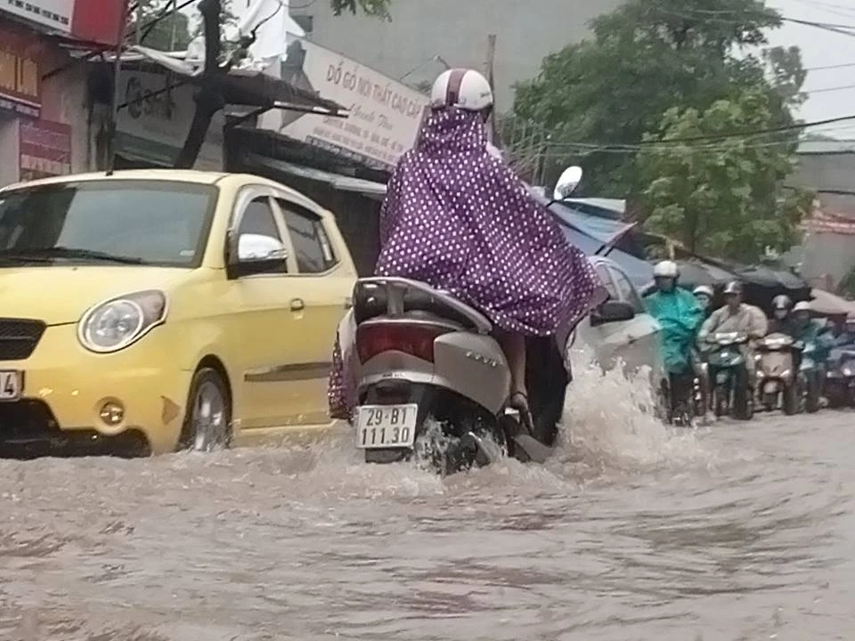 Hà Nội nhiều tuyến phố ngập sâu trong nước. Ảnh: Phi Hùng