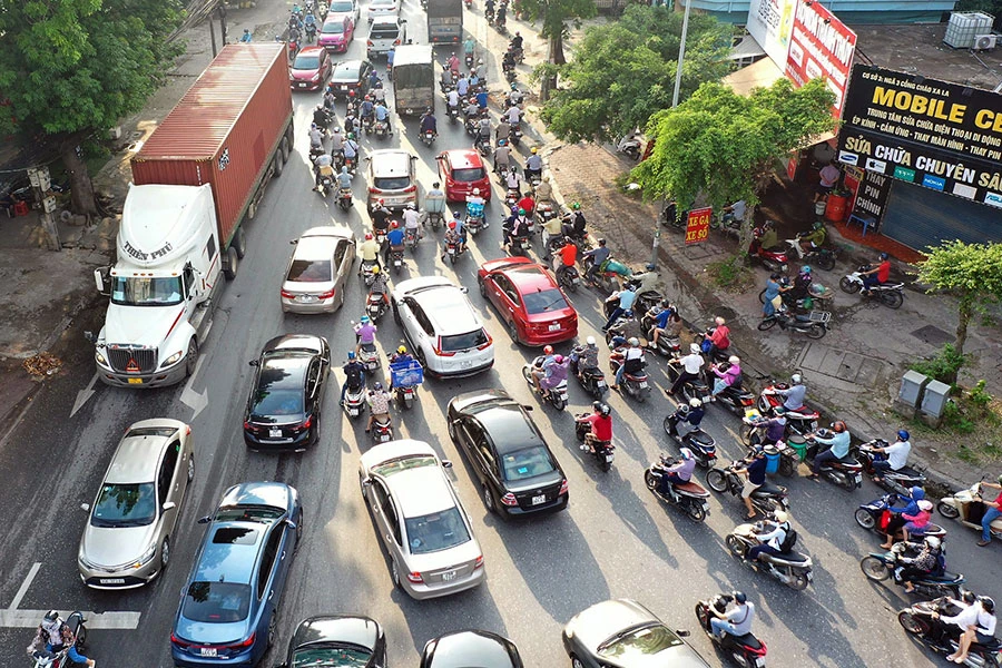 Theo ghi nhận của PV, ngay từ sáng sớm, lượng người và xe di chuyển trên các tuyến phố Hà Nội đông đúc. Một số trục đường như Trần Phú - Nguyễn Trãi, Trường Chinh, Xuân Thủy - Cầu Giấy… có thời điểm bị ùn ứ.