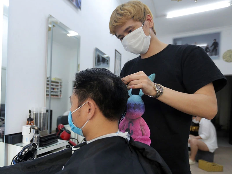Tiệm cắt tóc, gội đầu, một trong những dịch vụ được phép mở cửa trở lại. Ảnh: TUYẾN PHAN
